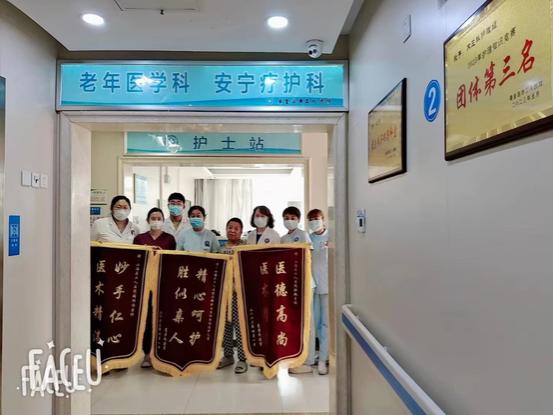 趙阿姨被診斷為病毒性肺炎,Ⅰ型呼吸衰竭合并多種疾病,入院時(shí)下了三次病危通知書(shū),但經(jīng)過(guò)老年醫(yī)學(xué)科專(zhuān)家的精準(zhǔn)救治和護(hù)理人員的精心照料,病情很快穩(wěn)定。在撤掉高流量吸氧可以下床活動(dòng)的當(dāng)天,趙阿姨就迫不及待的由家屬攙扶著,為老年醫(yī)學(xué)科的醫(yī)護(hù)人員親自送上三面錦旗。趙阿姨握著閻欣怡醫(yī)生、馮娜護(hù)士長(zhǎng)的手動(dòng)情的說(shuō)道:感謝老年醫(yī)學(xué)科全體人員的妙手救治和精心護(hù)理,幫我挺過(guò)難關(guān),祛除疾病,恢復(fù)健康。