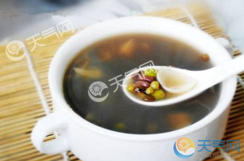 做法:由綠豆、赤小豆和黑豆制成,熬制期間加入冰糖或紅糖。放涼后,連湯帶豆一起食用。