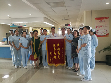 術(shù)后,在我院醫(yī)護(hù)人員的精心照料下,患者已經(jīng)順利出院。8月3日患者家屬來(lái)到我院普外二科,為全體醫(yī)生送上鮮紅的錦旗,上面寫著“醫(yī)德高尚,醫(yī)術(shù)高超”八個(gè)大字。這不僅僅是一面錦旗,而是對(duì)我院全體醫(yī)護(hù)人員的信任與肯定;颊叩呐畠哼感激的說(shuō)到:“在這里住院就像在家里一樣,是工人醫(yī)院給了老父親第二次的生命,我代表我父親以及全體的家屬,感謝工人醫(yī)院所有醫(yī)護(hù)人員!”