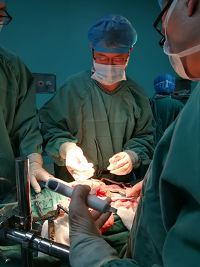 一83歲高齡男性患者因陣發(fā)性腹痛伴發(fā)熱10天加重1天于我院普外二科住院治療,詢問病史訴既往30年前因腸梗阻曾切除部分腸管,但具體疾病及術(shù)式不清,入院后腹痛逐漸加重,并出現(xiàn)腹膜炎體征,初步考慮為考慮腸梗阻。梁曉輝主任告知家屬需要盡快手術(shù),不然患者會(huì)有生命危險(xiǎn);颊呒覍?zèng)Q定第二天早晨做手術(shù),可到半夜患者開始高燒,情況非常緊急,梁曉輝主任馬上從家中趕來(lái),立即為患者手術(shù)。緊急查房結(jié)合上訴病史癥狀查體及輔助檢查,指出目前不除外腸絞窄的可能,急診行剖腹探查術(shù)。術(shù)中見腸管與腹壁廣泛粘連, 術(shù)操作極為困難,在此病情復(fù)雜、困難重重的前提下,梁曉輝科主任臨危不懼,在不允許有一絲操作失誤的情況下,憑借多年豐富的手術(shù)經(jīng)驗(yàn),步步為營(yíng)小心謹(jǐn)慎的操作,最終用時(shí)6個(gè)小時(shí)成功的完成了如此復(fù)雜的手術(shù),且患者術(shù)后恢復(fù)順利,無(wú)任何并發(fā)癥的出現(xiàn),展現(xiàn)了我院普外二科雄厚的技術(shù)實(shí)力。