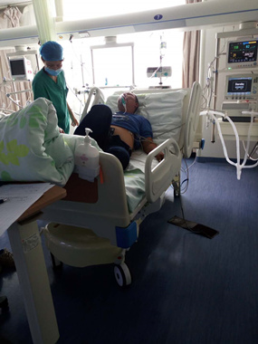 9月19日,我院急診科來了一名急癥男性患者。陪同前來的家屬說,患者8小時(shí)前突然感覺咽痛,于當(dāng)?shù)卦\所輸液治療,輸液結(jié)束后患者出現(xiàn)雙上肢皮疹、瘙癢、呼吸困難。家屬緊急將患者送入我院治療。急診醫(yī)生接診后,隨即安排病人吸氧,在吸氧的過程中,病人突然出現(xiàn)呼吸極度困難伴有喉鳴音、大汗、血壓升高、煩躁等癥狀。經(jīng)驗(yàn)豐富的急診科主任秦錚和隨后趕來會(huì)診的五官科齊國(guó)榮主任判斷病人為急性喉頭水腫性窒息,當(dāng)即給予病人行大劑量激素以便減輕喉頭水腫,同時(shí)緊急將病人收入ICU病房。