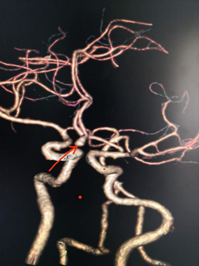 9月15日,一名55歲男性患者突發(fā)意識(shí)不清,約半小時(shí)后恢復(fù)意識(shí),但仍嗜睡、頭痛、頭暈、惡心、嘔吐。緊急到我院救治,經(jīng)頭部CT檢查發(fā)現(xiàn)有蛛網(wǎng)膜下腔出血,考慮動(dòng)脈瘤破裂出血可能性大。經(jīng)用藥病情稍穩(wěn)定后行頭部CTA血管成像檢查。我院CT室專家給出明確診斷為“前交通動(dòng)脈瘤”。神經(jīng)外科主任王鍵銘及主治醫(yī)生李子光立即向家屬交代病情,經(jīng)家屬同意后決定急診行“開顱動(dòng)脈瘤夾閉術(shù)”。