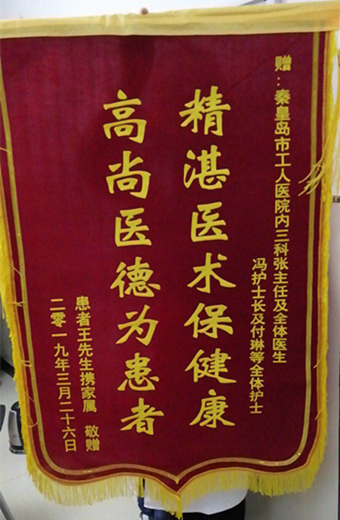 患者王先生及家屬贈(zèng)送錦旗感謝內(nèi)三科全體醫(yī)護(hù)人員