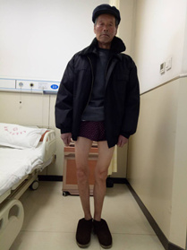 70歲的孫大爺飽受右膝關節(jié)疼痛折磨近20年,20年來孫大爺和他的家人四處求醫(yī)問藥,但收效甚微,后來,孫大爺?shù)募胰说弥鼗蕧u市工人醫(yī)院骨二科王永述主任開展膝關節(jié)置換手術,并取得了良好的治療效果,孫大爺雖然是承德醫(yī)保,但仍然慕名轉院來到我院。就醫(yī)時孫大爺?shù)碾p膝關節(jié)已經(jīng)嚴重內翻畸形,術前X線可以看到大量的骨質增生。經(jīng)過嚴格的術前評估,1月17日,王永述主任為孫大爺進行了右側全膝關節(jié)置換手術。手術歷時95分鐘,術后馬上恢復了下肢力線,并糾正了內翻畸形,術后我們又看到了孫大爺久違的笑容。