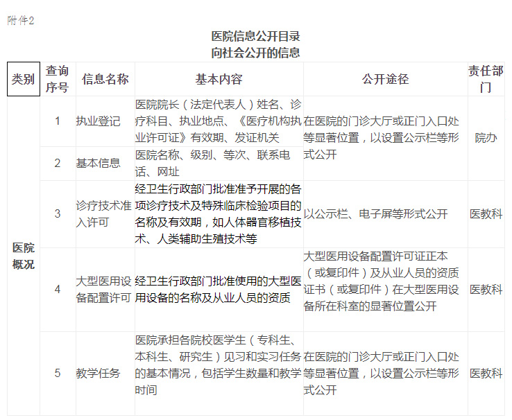 2、醫(yī)院信息公開目錄