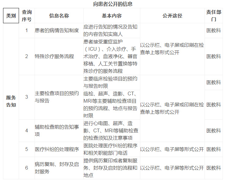 (四)醫(yī)療服務(wù)信息和醫(yī)療承諾內(nèi)容可通過電子顯示屏、觸摸屏和宣傳欄等形式公開。內(nèi)容發(fā)生變化及時更新。