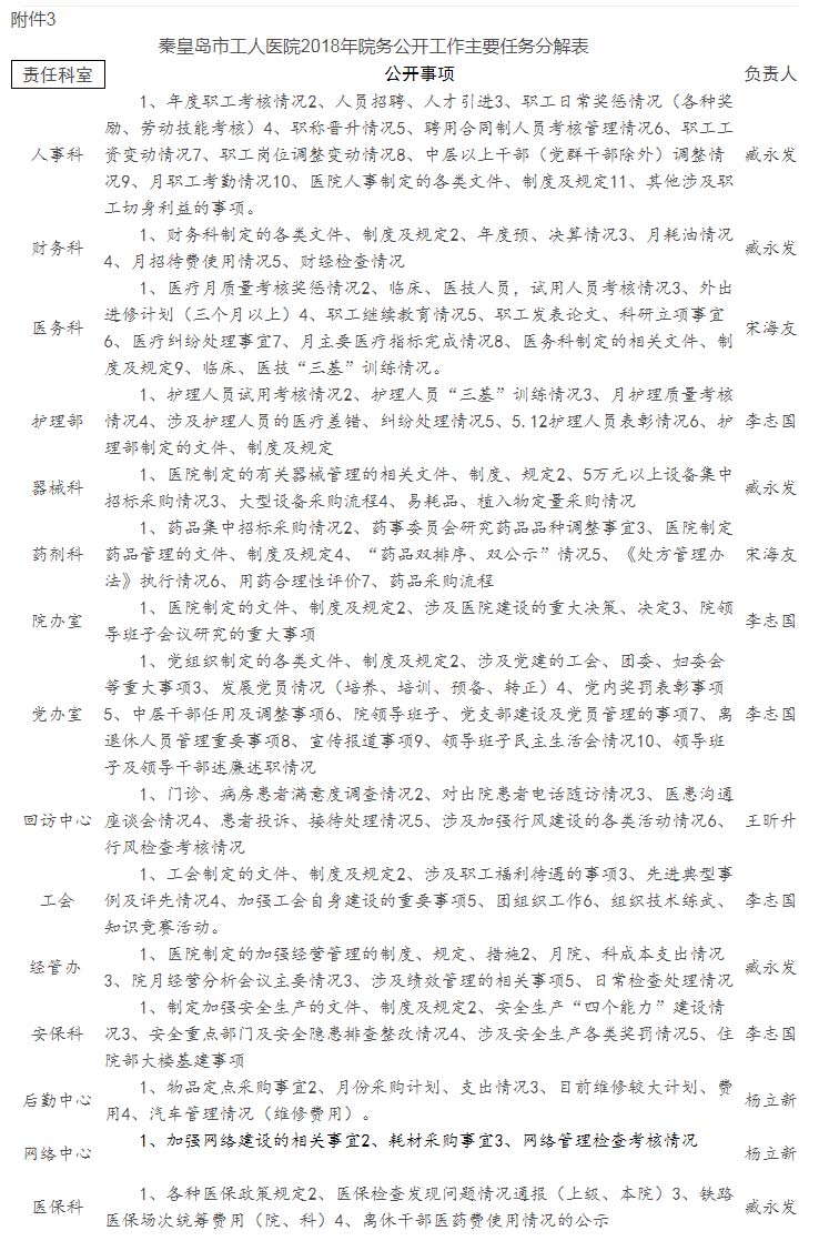 3、院務(wù)公開工作任務(wù)分解表