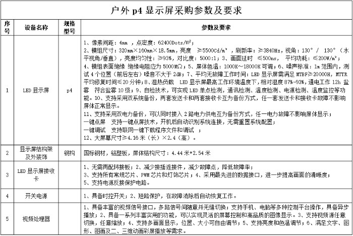 1、戶外p4顯示屏采購參數及要求(見附件)