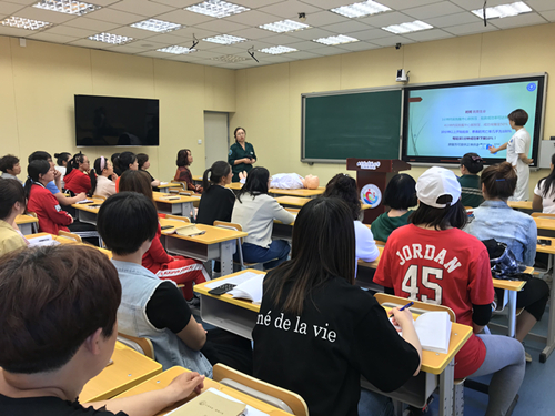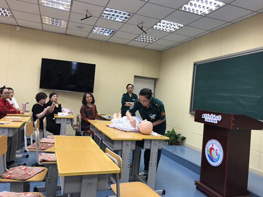 培訓(xùn)中,醫(yī)護(hù)人員用通俗易懂的語言為大家講解了心肺復(fù)蘇、意外事件處置等急救知識,并就如何調(diào)整體位、打開氣道、判斷呼吸、人工呼吸、胸外心臟按壓等應(yīng)急救護(hù)方法進(jìn)行了現(xiàn)場操作演練。課后同教師們積極互動,認(rèn)真解答問題,并向教師們普及了120撥打的正確方法和注意事項(xiàng)。