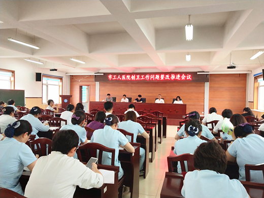 為落實《秦皇島市衛(wèi)生健康系統(tǒng)創(chuàng)建國家衛(wèi)生城市督導檢查工作方案》,7月5日下午,市工人醫(yī)院召開了創(chuàng)衛(wèi)工作問題整改推進會議,會上傳達了市衛(wèi)健委關于“創(chuàng)衛(wèi)”整改鞏固工作的指示精神,對做好創(chuàng)衛(wèi)工作進行再安排、再部署、再落實,動員全院廣大干部職工積極行動起來,進一步鞏固“創(chuàng)衛(wèi)”成果,全力“備戰(zhàn)國檢”。院領導班子、中層干部、各臨床科室主任、護士長及創(chuàng)衛(wèi)工作相關科室負責人60余人參加會議。