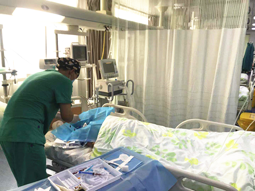 59歲的牧先生,和同事一起從天津來秦皇島旅游,在海邊游泳時不慎溺水。由西甸子衛(wèi)生院轉到我院時,患者已心跳、呼吸停止約30分鐘,面色青紫、頸動脈搏動消失、雙側瞳孔散大。我院急診立即進行心肺復蘇、建立靜脈通路、進行氣管插管吸氧、保暖、導尿、保持呼吸道暢通。經(jīng)過半個小時的緊張搶救,終于在15點58分復蘇成功,患者心跳恢復,立即轉入ICU ,進行下一步治療。