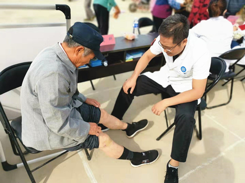 在義診中,一位由于腦出血導致四級殘疾的老人連續(xù)兩天到村部參加義診,老人杵著拐走到骨一科喬剛醫(yī)生身邊的時候,禁不住留下了感激的淚水,“感謝工人醫(yī)院的大夫能來給看看病,這么多年一直飽受腰腿痛困擾,城里的路太遠了,市里大醫(yī)院的大夫能來給看病感到很滿足!绷x診醫(yī)生在得知老人的老伴也是一位因病致殘的患者時,隔日超聲科楊明醫(yī)生,護士李萌又特意到患者家里去給老人進行了心電圖、超聲、采血、血壓等檢查。