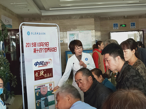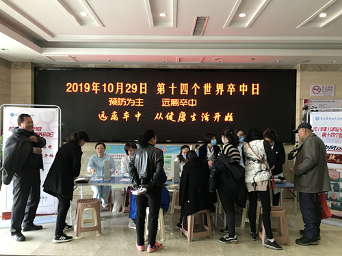 2019年10月29日是第十四個(gè)“世界卒中日”,為切實(shí)提高人民群眾對腦卒中防治知識(shí)的知曉率和控制率,倡導(dǎo)健康生活方式,實(shí)現(xiàn)腦卒中的早防、早診、早治。10月28日上午,秦皇島市工人醫(yī)院神經(jīng)內(nèi)科主任張翠云,護(hù)士長張靜等專家?guī)ьI(lǐng)醫(yī)護(hù)人員在我院新住院部大廳開展了“預(yù)防為主、遠(yuǎn)離卒中”為主題的義診活動(dòng)。