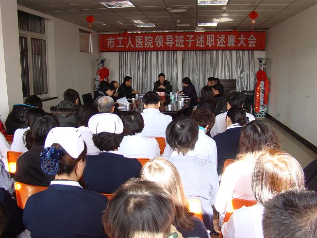 院長李志國代表院領(lǐng)帶班子作了2011年度述職述廉報告。李院長就一年來醫(yī)院發(fā)展的現(xiàn)狀,各項任務(wù)指標(biāo)的完成情況,醫(yī)療改革的成果,基建工程的籌備,整體決策的部署,特色品牌、醫(yī)護隊伍、行風(fēng)廉政、文化的建設(shè),制度管理等一系列改革措施和取得的成效做出了詳細的匯報。李院長表示:在上級領(lǐng)導(dǎo)的關(guān)懷下,在班子成員的共同努力下,雖然取得了一定成績,但也存在諸多不足。在今后的工作中,將發(fā)揚成績,彌補不足,扎實工作,積極進取,努力取得令全院干部職工和組織滿意的工作實績。