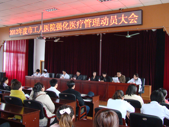 為了貫徹落實市衛(wèi)生局衛(wèi)生工作和醫(yī)改工作重點的會議精神,按照市衛(wèi)生局的統(tǒng)籌安排和戰(zhàn)略部署,我院于4月10日召開了《2012年度強化醫(yī)療管理》動員大會,安排部署了我院2012年醫(yī)療衛(wèi)生管理工作的任務(wù)。領(lǐng)導(dǎo)班子全體、全院中層以上干部、醫(yī)療醫(yī)技、護理人員150余人參加會議。