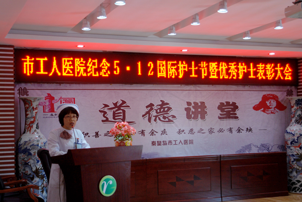 李志國院長在講話中對護理工作給予了充分肯定,同時希望廣大護理工作者繼續(xù)發(fā)揚南丁格爾精神,在技術上更加精益求精,在服務上更加主動周到,真正做到心中有責,用心做事。堅持“以病人為中心”,真正做到“以人為本”,塑造“天使”形象、彰顯“天使”本色,用你們不懈的努力,使我院的護理工作再上新臺階,為廣大患者的健康提供最有力的保障,為我院美好的明天再創(chuàng)新的輝煌!