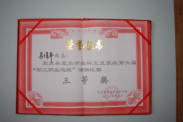 市工人醫(yī)院馬保平獲秦皇島市第六屆“職工職業(yè)道德”演講比賽第三名