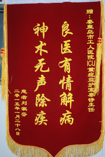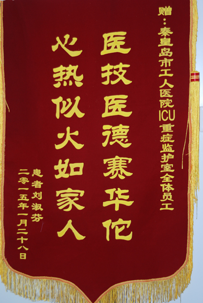 “醫(yī)技醫(yī)德賽華佗,心熱似火如家人”這面錦旗是患者劉女士及家屬對(duì)工人醫(yī)院重癥醫(yī)學(xué)科全體醫(yī)護(hù)人員和秦主任的真情表白。