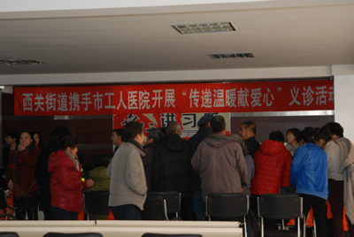 走進西關(guān)社區(qū)服務(wù)綜合大廳內(nèi),暖意濃濃,愛心義診在這里舉行。不少社區(qū)居民聞訊而來,感受學雷鋒帶來的力量!皩W雷鋒,免費為居民義診,我們都鼓掌歡迎!睘榱嗽诨顒赢斎兆尵用駛冇挚煊趾玫剡M行體檢,市工人醫(yī)院抽調(diào)了有多年經(jīng)驗的醫(yī)護人員。“平時到醫(yī)院做心電圖要排隊掛號,現(xiàn)在醫(yī)生到家門口給我們看病,這是真是大好事啊!64歲的魏大娘提起義診進社區(qū)活動時高興地說。住在西關(guān)社區(qū)的李大娘下午早早就來到社區(qū)服務(wù)綜合大廳的愛心義診室,等待檢查。
