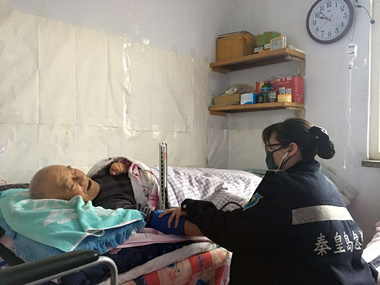 為老人測(cè)完血壓、血糖,評(píng)估完老人的全身健康狀況后,嚴(yán)格按照操作規(guī)程為老人更換了長(zhǎng)期留置的導(dǎo)尿管,醫(yī)務(wù)人員對(duì)一些老年人常見(jiàn)病、多發(fā)病的預(yù)防、護(hù)理、用藥方法及飲食習(xí)慣等健康知識(shí)進(jìn)行詳細(xì)講解。