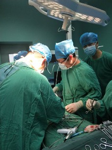 術(shù)中腹腔探查后發(fā)現(xiàn)里面有接近5500毫升的不凝血,患者肝臟、脾臟出血還在增加,肝臟自廉狀韌帶處斷裂,長約12CM,出血兇猛,肝Ⅵ、Ⅶ段部分破裂,長約14cm,邊緣不整,術(shù)中復(fù)查肝臟CT,肝實質(zhì)內(nèi)有巨大血腫,肝挫傷嚴重,僅存少量肝組織,胰頭有血腫,脾下極有一長約4CM破裂口,被膜及實質(zhì)破裂,有新鮮血流出。梁主任帶領(lǐng)醫(yī)護團隊歷經(jīng)6小時的全力奮戰(zhàn),傷者的脾臟被順利切除,肝臟也完成了縫合,成功堵住了出血口。直到將傷者送進ICU,所有參與搶救的醫(yī)護人員才松了一口氣。梁主任感慨的說:“這個病人晚進手術(shù)室20分鐘,這條命是鐵定沒有了!”截止到發(fā)稿患者病情趨于穩(wěn)定,生命體征平穩(wěn),已轉(zhuǎn)入普外二科繼續(xù)接受治療。