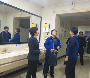 督導(dǎo)組首先聽取了李志國院長關(guān)于醫(yī)院創(chuàng)衛(wèi)工作的匯報。之后,督導(dǎo)組通過查看資料、現(xiàn)場詢問各科室相關(guān)負責人,了解醫(yī)院創(chuàng)衛(wèi)工作進展情況。督導(dǎo)組還冒雨深入各個點位,實地查看,對門診、食堂、醫(yī)療廢物暫存點、健康教育宣傳欄等部位進行重點查看。
