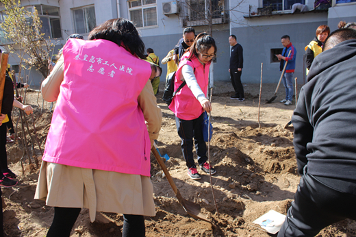 春風吐綠,草木初萌,2019年4月14日下午,秦皇島市工人醫(yī)院團委組織黨員、青年、團員志愿者參加路南街道組織的“同心共植文明樹 攜手共建志愿林”植樹活動。